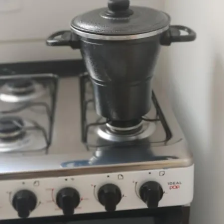 台所で食事を作られます。 敷地内にプールがありますから、利用しましょう。